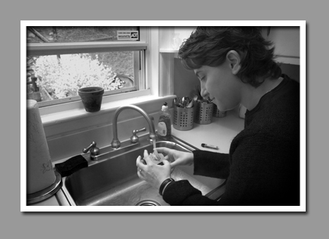 In a desperate attempt to stop and to regain control, she takes cigarettes to the kitchen sink and drowns them.